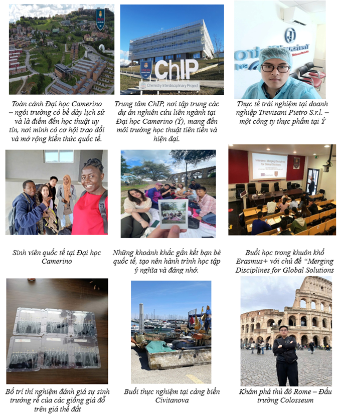 Sau học kỳ đầu tiên, tôi tiếp tục may mắn được tham gia chương trình trao đổi học thuật giữa Khoa Công nghệ Thực phẩm và Trường Đại học Camerino (University of Camerino – UNICAM), Ý trong 5 tháng. Tại đây, tôi không chỉ được nâng cao kiến thức và kỹ năng nghiên cứu, mà còn phát triển khả năng làm việc trong môi trường quốc tế cũng như trình độ ngoại ngữ. Trải nghiệm này giúp bản than tự tin hơn, sẵn sàng hội nhập và khẳng định năng lực trong lĩnh vực công nghệ thực phẩm. Tôi nhận ra rằng, học cao học chính là cánh cửa để tiếp cận tri thức toàn cầu và chuẩn bị hành trang vững chắc cho sự nghiệp lâu dài.