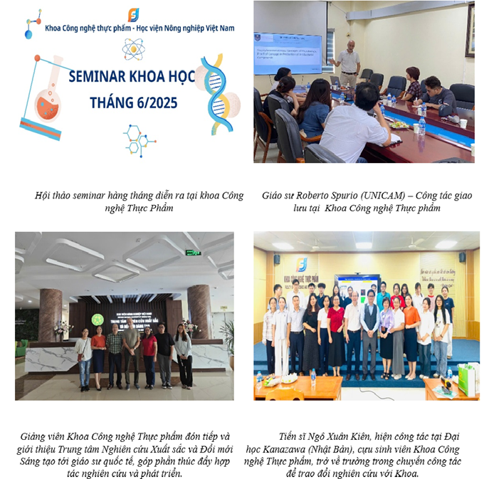 Song song với đó, Khoa Công nghệ thực phẩm thường xuyên tổ chức seminar khoa học trực tiếp, nơi giảng viên chia sẻ các chuyên đề nghiên cứu chuyên sâu, cập nhật xu hướng mới và những vấn đề nổi bật trong ngành thực phẩm. Đây là những buổi seminar học thuật giúp sinh viên, học viên cao học và nghiên cứu viên trao đổi, mở rộng tri thức, rèn luyện tư duy phản biện và nắm bắt kịp thời những đổi thay của lĩnh vực công nghệ thực phẩm.