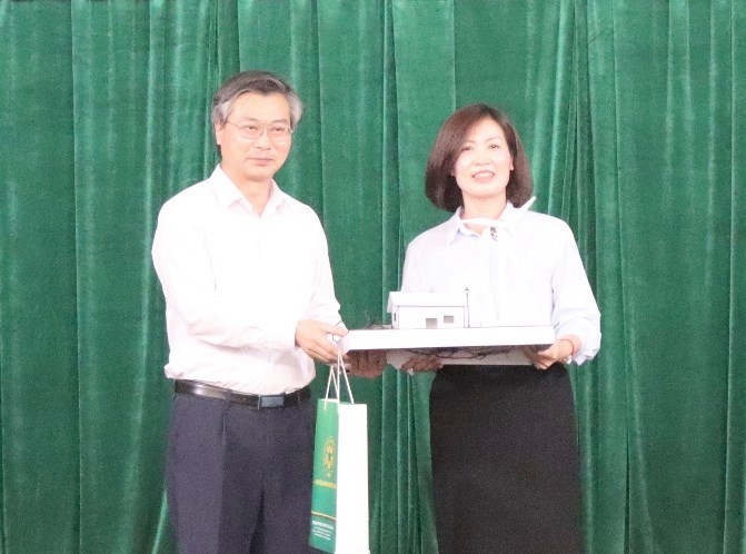 | Đại diện Học viện Nông nghiệp Việt Nam tặng mô hình Stem cho Sở GD&ĐT. |
