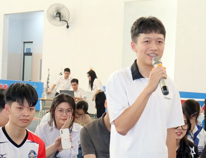 Học sinh Trường THPT chuyên Lê Quý Đôn đặt câu hỏi cho các chuyên gia của Học viện Nông nghiệp Việt Nam.